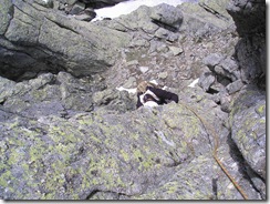 LLEGAMOS A LA BASE DE LA PARED MATAILLOS ,Y ALEX COMIENZA A PREOCUPARSE POR LO QUE SERA SU PRIMER RAPEL SI HACEMOS CUMBRE,.